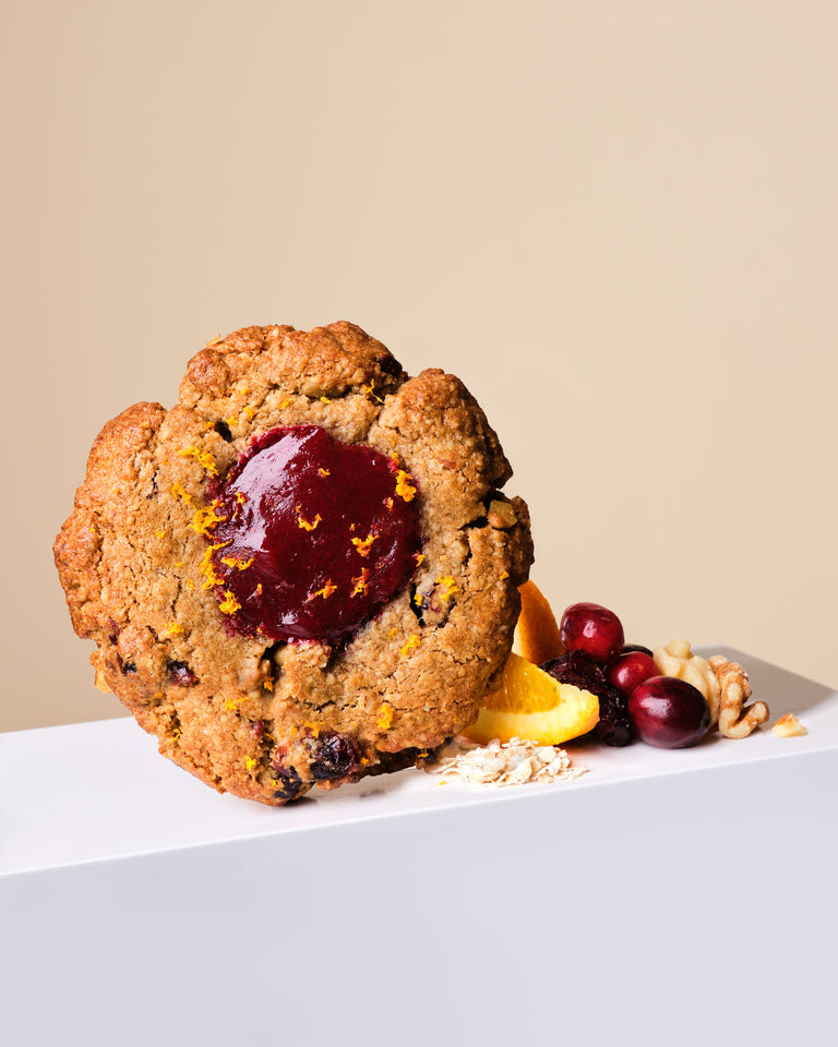 Back for the fall season, the oatmeal cranberry walnut. Topped with a dollop of housemate cranberry sauce, and orange zest.